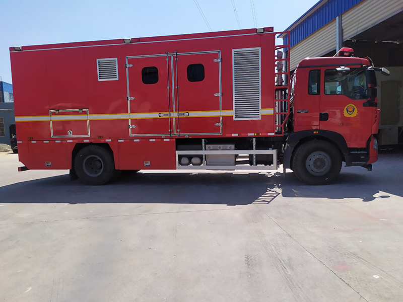 4) 安全措施。車廂內(nèi)門口處配有消防滅火器, 車廂內(nèi)配有煙感報**器、交直流防爆照明燈和應(yīng)急燈, 還有方便使用的接地釬和接地線, 以有效保證電源車的安全。選用智能滅火系統(tǒng),可無人值守。